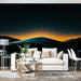 Ez a falfestmény sötét és nyugodt sivatagi tájat idéz, kiemelve a hullámzó homokdűnéket, amelyeket egy élénk naplemente világít meg. A gazdag narancssárga és kék árnyalatok energikus kontrasztot alkotnak az ég mély feketéjével szemben, meleg és megnyugtató hangulatot teremtve a belső térben.