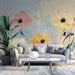 Fedezze fel virágos tapétánkat pasztell árnyalatokban, amely tökéletes egy puha és elegáns légkör megteremtéséhez a belső térben. A lágy árnyalatú virágok rózsaszín, sárga és fehér színekben finoman kontrasztálnak a világoskék háttérrel, harmonikus és megnyugtató tablót alkotva.