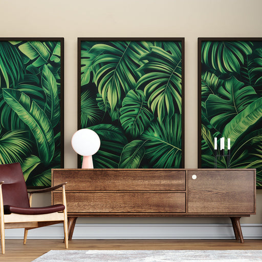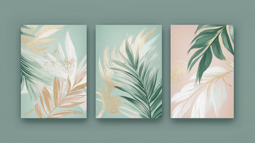 Teljes részletek megtekintéseTapéta utánzat kép | Három modernista leveles trió zöld árnyalatokban