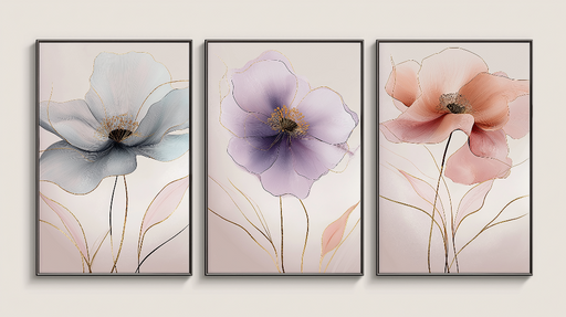 WonderMuralEz a fotó tapéta hangsúlyozza a finom virágok elegáns készletét pasztell tónusokban, igazi műalkotásként bemutatva. A kék, lila és rózsaszín árnyal...