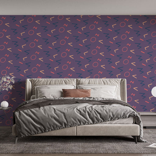 Teljes részletek megtekintéseFalfestmény tapéta retro | Lila geometriai minta