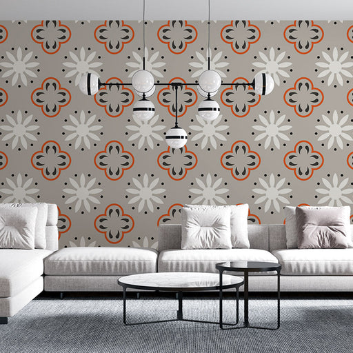 Studio SamaEz a retro mintás tapéta lenyűgöző geometrikus virágokkal és földes színekkel, valamint élénk narancssárgával rendelkezik. Tökéletes választás, ha ...