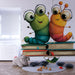 Adj hozzá egy játékos és vidám érintést gyermekszobájához a mosolygó hernyók tapéta segítségével. Ez a színes illusztráció két bájos hernyót ábrázol ragyogó szemekkel könyveken ülve, pillangók között.