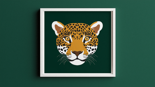 Teljes részletek megtekintéseFalfestmény utánzat festmény | Stilizált illusztráció egy leopárdfejről zöld háttérrel