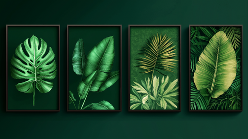 Teljes részletek megtekintéseFalfestmény utánzat festmény | Zöld levelek művészien kiemelve elegáns keretekben