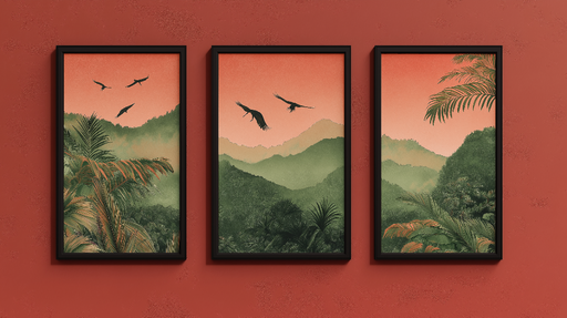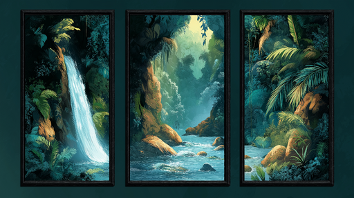 Teljes részletek megtekintéseTapéta festmény utánzat | Trópusi erdő panoráma három panelben