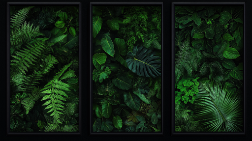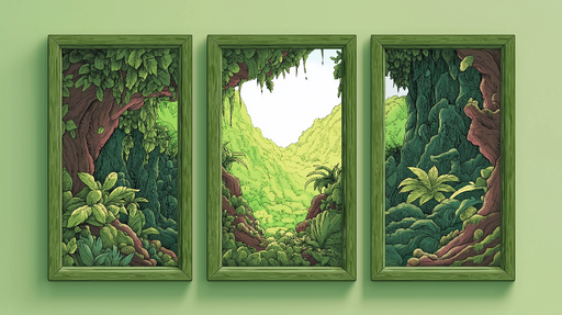 WonderMuralEredeti tapétánk egy trópusi erdő panorámáját mutatja be három panelben, mindegyiket gazdag zöld keret öleli körbe, ami az természetet idézi. A növ...