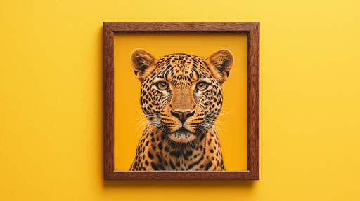 Teljes részletek megtekintéseFalfestmény utánzat festmény | Lenyűgöző leopárd portré élénk sárga háttéren