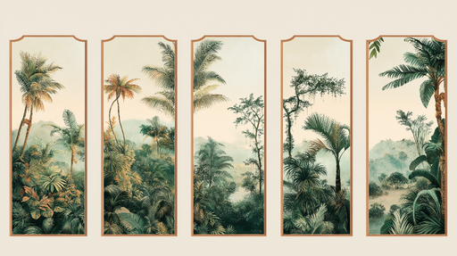Teljes részletek megtekintéseFalfestmény utánzat | Trópusi tájak négy panelen