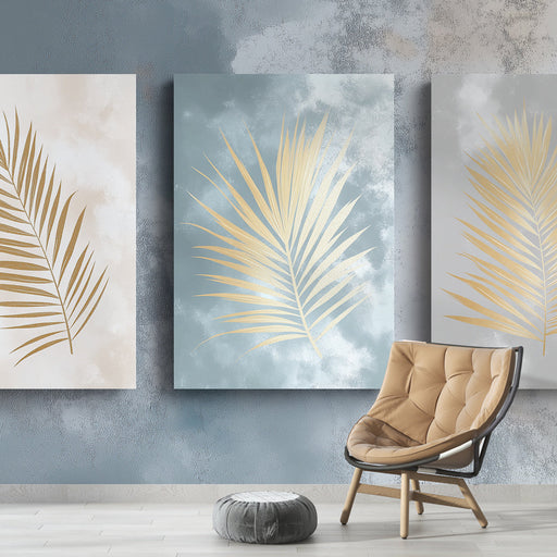 Teljes részletek megtekintéseFotótapé pálmafás utánzat festés | Arany levelek puha pasztell háttéren