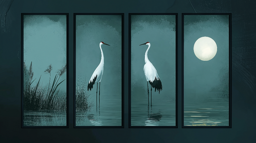 Teljes részletek megtekintéseFotótapéta utánzó asztal | Elegáns daruk holdfényben