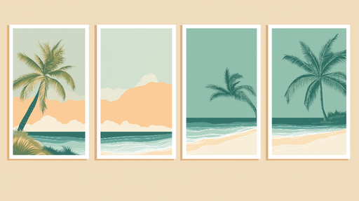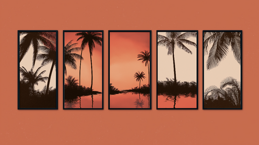 WonderMuralEredeti falfestményünk négy panelen egy trópusi naplemente jelenetét ábrázolja, ahol a rózsaszín, narancs és kék élénk árnyalatai harmonikusan keve...