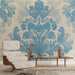 Falikárpit shabby chic | Elegáns kék damasztminta krémszínű háttéren