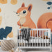 Ez a falfestmény tapéta egy mosolygó mókust ábrázol narancssárga bundával, művészi és játékos stílusban illusztrálva. Meleg tónusú levelek és nyugtató kék árnyalatok veszik körül, ez a minta tökéletesen alkalmas arra, hogy egy kis varázslatot adjon a belső térnek.