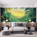 Falfestmény tapéta trópusi dzsungel | Bujas tájkép színes palettával naplementekor