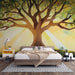 Ez a művészi falfestmény kiemel egy fenséges fát, amelynek ágai kecsesen nyúlnak el egy élénk égbolt alatt, arany és zöld árnyalatokkal. A stilizált minta a természetet idézi teljes pompájában, nyugtató és inspiráló légkört teremtve otthonában.
