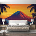 Ez a lenyűgöző falfestmény tapéta egy vulkáni tájat ábrázol élénken, ahol egy fenséges vulkán áll a naplemente meleg színeiben izzó ég alatt. A vörös, narancs és lila árnyalatai dinamikus és elbűvölő légkört teremtenek, míg az árnyékos pálmafák trópusi hangulatot kölcsönöznek a dizájnnak.