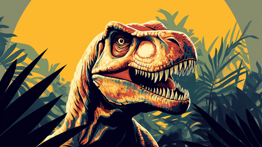 WonderMuralEz a lenyűgöző falfestmény egy fenséges tyrannosaurust ábrázol, amelyet buja dzsungel vesz körül. Az élénk színpaletta, sárga háttérrel, amely a le...