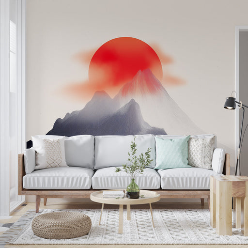 Teljes részletek megtekintéseFalfestmény tapéta stilizált hegy | Élénk vörös naplemente