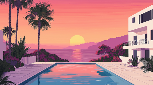 WonderMuralA tapétánk megnyugtató tengerparti látványt idéz, egy modern villa-t mutat be tiszta vonalakkal, egy végtelen medencével, amely tükrözi a naplement...
