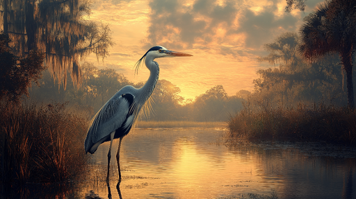 Teljes részletek megtekintéseFotótapé hólyag | Fenséges hólyag naplementében mocsáros tájban