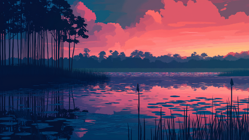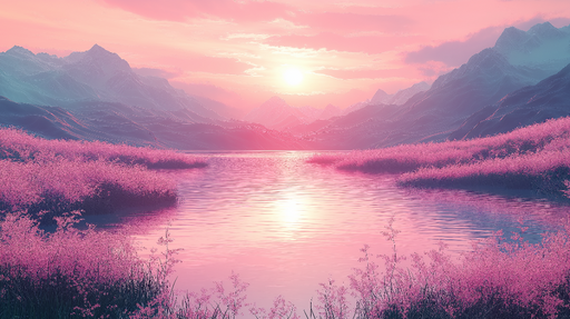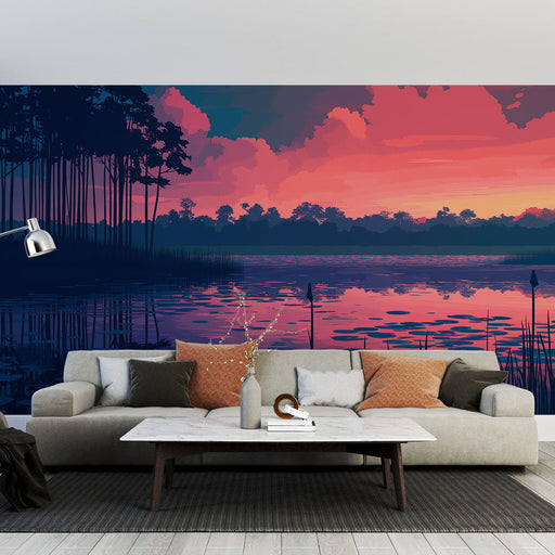 WonderMuralA tapétánkon egy gyönyörű tó naplementekor látható, ahol a rózsaszín és kék élénk árnyalatai harmonikusan keverednek, hogy nyugodt hangulatot terem...