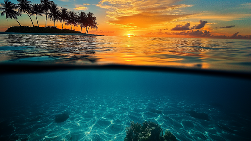 WonderMuralEz a lenyűgöző tapéta megragadja a ragyogó naplemente szépségét, amely tükröződik a kristálytiszta vizeken, körülvéve pálmafák sziluettjeivel. A me...