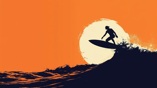 Art'loloEz a tapeta szörfös egy elegáns sziluettet ábrázol, ahogy a szörfös egy hullámmal küzd, egy ragyogó naplemente előtt. Az élénk narancssárga háttér ...
