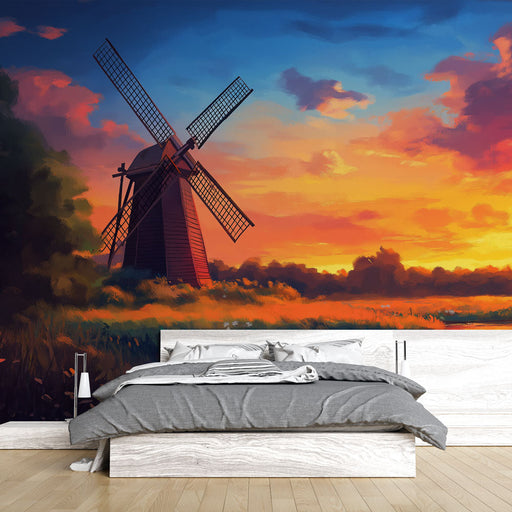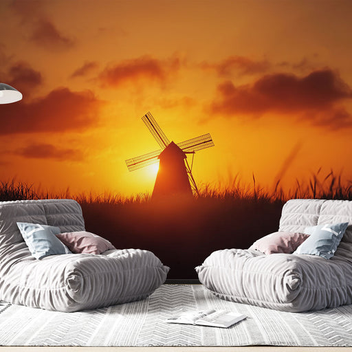 WonderMuralA mi falfestmény tapétánk egy gyönyörű szélmalom sziluettjét ábrázolja, amelyet a naplemente lángoló égboltja ellen vetítettek. A narancs és sárga ...