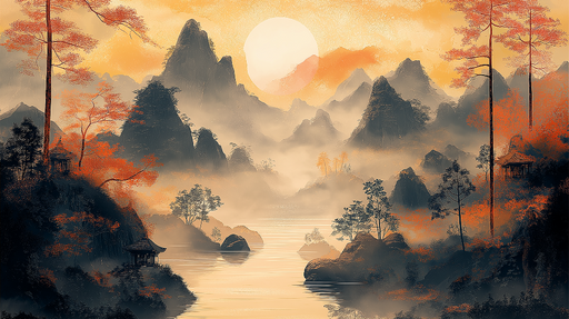 WonderMuralTapétánk nyugodt világot idéz meg, lenyűgöző kínai tájjal, amelyet a naplemente aranyórájában borító ködös hegycsúcsok képviselnek. A meleg árnyala...