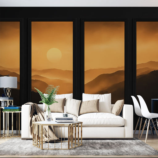 WonderMuralEredeti falfestmény tapétánk egy nagyszerű panorámát mutat be ködbe burkolózó hegyekről, amelyet egy meleg, narancsos árnyalatú naplemente tesz még...