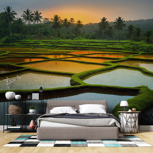 WonderMuralA falfestményünk egy csodálatos tájat mutat be, amely teraszos rizsföldeket ábrázol, arany fényben fürödve naplementekor. A rizsföldek mintázatai h...
