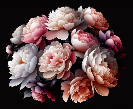 Teljes részletek megtekintésePeónia Tapéta | Fekete Háttér és Színes Reális Virágok