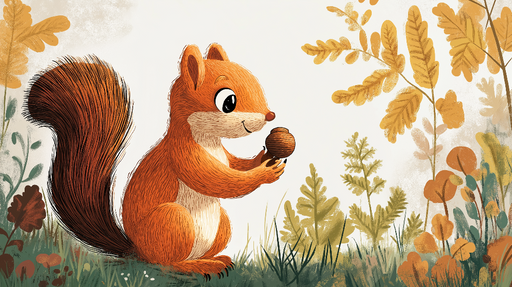Teljes részletek megtekintéseFalfestmény tapéta mókus | Mosolygó mókus, amely egy diót tart egy őszi tájban