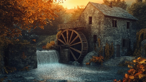 WonderMuralEz a falfestmény tapéta egy bájos vízimalmot emel ki, amely egy békés tájban helyezkedik el, őszi arany árnyalatokkal és aranyló levelekkel. A kő s...