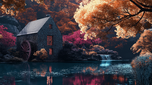 Teljes részletek megtekintéseFalfestmény malom | Bájos vízimalom őszi tájakkal körülvéve