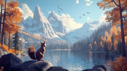WonderMuralEz a falfestmény egy imádnivaló mókust ábrázol narancssárga bundával, amely egy sziklán áll egy fényes őszi tájban. A narancs és piros levelek mele...