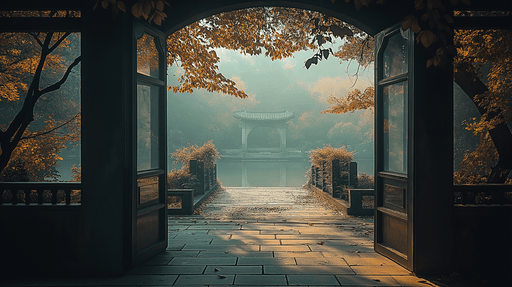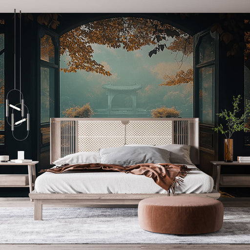 WonderMuralEz a falfestmény nyugodt keleti jelenetet idéz, amely egy hagyományos pavilont ábrázol, élénk őszi lombozattal körülvéve. A vörös és narancssárga l...