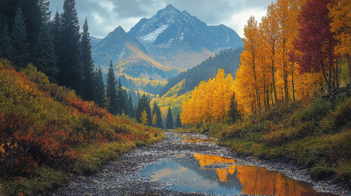 WonderMuralEz a falfestmény egy lenyűgöző őszi tájat ábrázol, amelyen a színes kövek egy tó alján pihennek. A fák lángoló sárga, narancs és piros árnyalatokka...