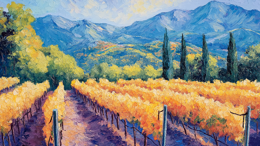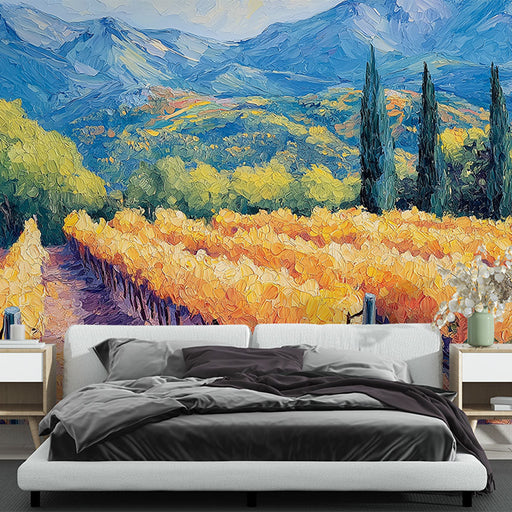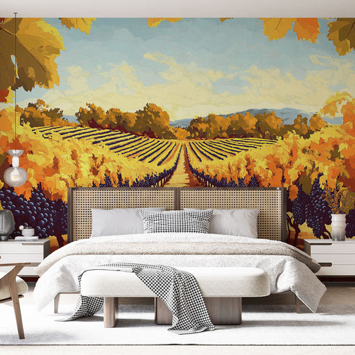 Teljes részletek megtekintéseFalfestmény szőlőültetvény | Őszi jelenet aranyszínű szőlőtőkékkel