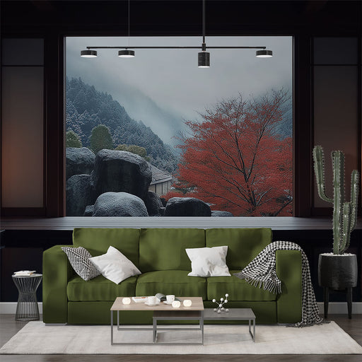 WonderMuralEz a falfestmény a hegyek őszi látképének nyugalmát idézi, ahol egy élénk vörös juhar fenségesen kontrasztál a havas sziklákkal. A japán stílusú ab...