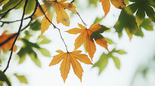 Teljes részletek megtekintéseFalikép őszi levelek | Narancs és zöld juharlevelek világos háttéren