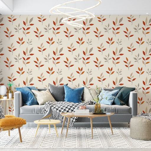 Teljes részletek megtekintéseFali tapéta őszi levelek | Narancssárga és bézs leveles minta puha háttéren