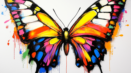 WonderMuralEz az élénk és művészi tapéta egy színes pillangót ábrázol kifejező és absztrakt stílusban festve. A szárnyakat széles ecsetvonások díszítik élénk ...