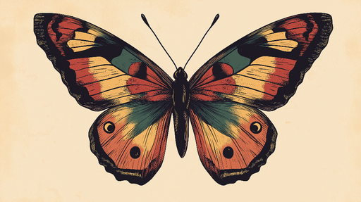 Teljes részletek megtekintéseSzínes pillangó tapéta | Illusztráció egy pillangóról fényes szárnyakkal és mosollyal