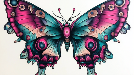 WonderMuralEz a falfestmény tapéta egy lenyűgöző pillangót ábrázol élénk színekkel, beleértve a rózsaszín, türkiz és mélykék árnyalatokat. A grafikai minta, a...
