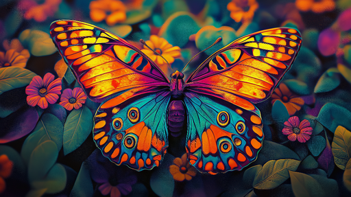 Teljes részletek megtekintéseSzínes pillangó tapéta | Mosolygó pillangó élénk szárnyakkal egy varázslatos környezetben