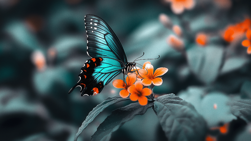 Teljes részletek megtekintéseSzínes pillangós tapéta | Boldog pillangó kék és narancssárga szárnyakkal egy virágzó kertben
