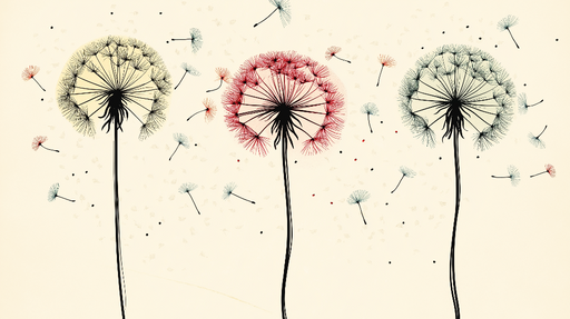 WonderMuralEz a falfestmény tapéta egy finom pitypang mintát ábrázol, ahol három stilizált virág áll egy lágy háttér előtt. A vörös és kék árnyalatok kontrasz...