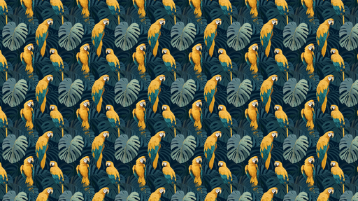 Teljes részletek megtekintéseFotótapéta perroquet | Egy színes sárga papagáj minta a trópusi levelek között